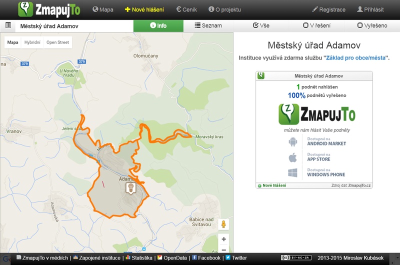 Tato aplikace je v současné verzi k dispozici zhruba 3 roky. Provozovatel projektu ZmapujTo shromažďuje přijatá hlášení a zajišťuje jejich zaslání na příslušnou municipalitu, a to i tehdy, není-li tato municipalita do projektu začleněna. Z webové stránky projektu lze zjistit, že takových registrovaných municipalit je v současnosti asi 300. Naše město se do projektu zaregistrovalo v březnu tohoto roku.