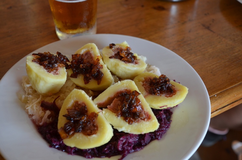 Krásné počasí nás provázelo celý den až do Blučiny, kam jsme bez nehody dorazili. Zde jsme každý ochutnali místní knedlíkový pokrm.