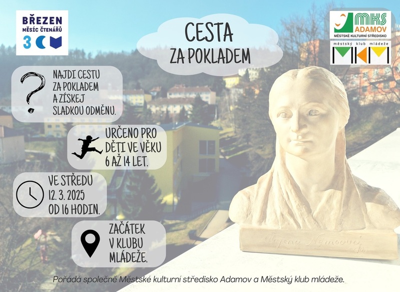 Ve středu 12. března 2025 v 16 hodin se v Městském klubu mládeže Adamov můžete zúčastnit Cesty za pokladem.