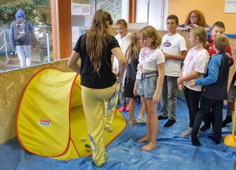 O úvod se postarali tanečníci z Kola-Kola pod vedením Kateřiny Prudíkové. Pak děti čekaly disciplíny na téma Domov, takže tloukly hřebíky a šroubovaly v dílně, zašly do sklepa pro zeleninu, pomohly v kuchyni, vydrhly se v koupelně, zaparkovaly vozidlo v garáži, setřídily boty v šatně nebo uklidily dětský pokoj. Největší ohlas ovšem sklidilo chytání vodních kapek ze střechy!