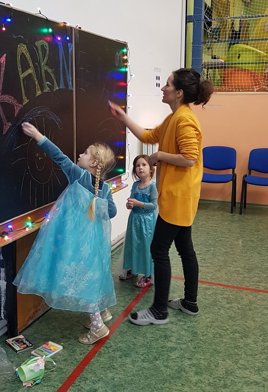 Hrály se hry jako Na sochy, Pexeso, Hledání maminky, Kostková ruleta a nebo Pruhované prase, které bylo asi nejnapínavější. Tančily se Kačátka, Makarena, Mašinka nebo Trpaslíček. Z masek, které zvítězily, připomeňme třeba roztomilou paní doktorku, bílou sovu, pirátskou rodinu, popeláře a semafor, duhovou vílu, kosmonauta, rytíře, králíčka a zahradníka... Speciální cenu v podobě pleťové masky získala maminka pirátka. Všem to moc slušelo! Děkujeme za krásné nezapomenutelné odpoledne.