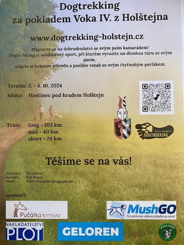 Ve dnech 3. – 6.10.2024 pořádá kynologický klub Adamov svou největší letošní akci, a to dogtrekking Za pokladem Voka IV. z Holštejna.