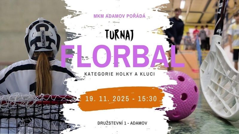 Turnaj ve florbale se uskuteční ve středu 19. listopadu 2025 v prostorách Městského klubu mládeže Adamov. Soutěžíme v kategoriích Holky a Kluci. Určen je pro čtyřčlenná družstva. Začátek v 15.30.