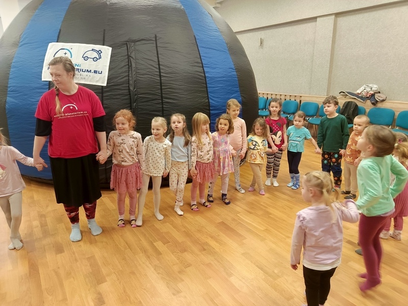 Klasické pohádky jsme v únoru vyměnili za pohádku v Mobilním planetáriu. Ta byla určena 3. února pro děti z MŠ Jilemnického. V odpoledních hodinách jsme pro děti ze školní družiny měli představení poučné a po něm následovala malá tvůrčí dílna. 03/02/2026