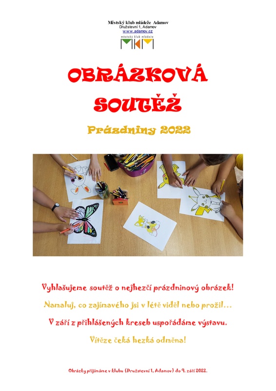 Obrázky přijímáme v klubu (Družstevní 1, Adamov) do 9. září 2022.