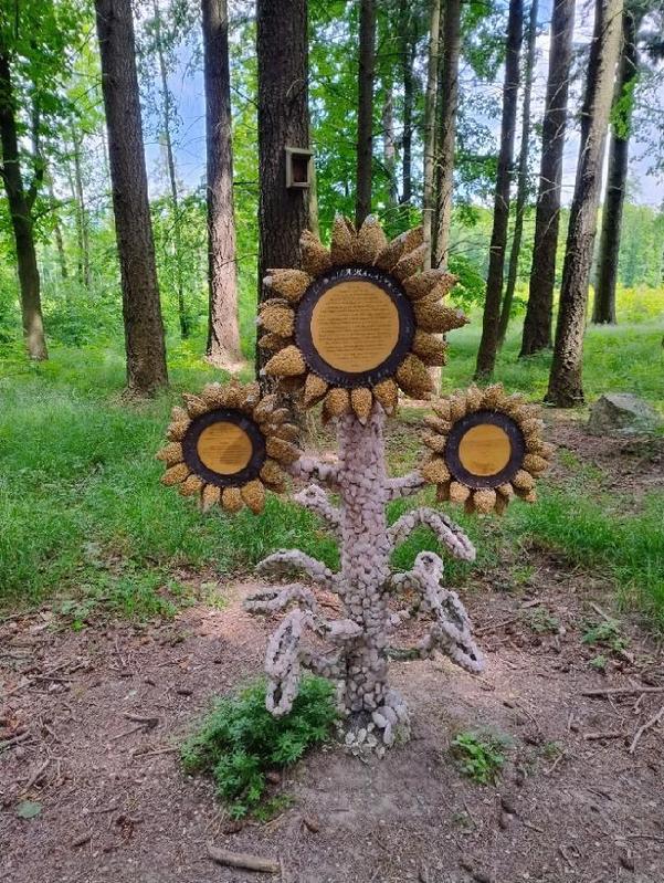Na sobotu 24. května 2025 jsme si naplánovali vycházku Přírodním parkem Říčky. Byl zřízen v roce 1992 a nachází se na rozhraní okresů Brno-venkov a Vyškov. Roste zde množství chráněných rostlin a má bohatou síť drobných potoků a studánek, mezi nimi je i potok Říčky. Park křižuje síť cest a značených tras. My jsme zvolili cestu z Hostěnic a vyrazili po žluté TZ podél Hostěnického potoka k první zastávce u lovecké chaty Jelenice. Po krátkém odpočinku jsme odbočili na modrou TZ a údolím nivy mírně stoupali až po křížení s Pozorsko-Račickou cestou k vrcholu Žalmanův kámen. Pamětní místo připomíná kovová deska ke stému výročí narození Josefa Žalmana, zakladatele myslivosti. Ozdobou je i kamenná slunečnice na paměť Ludmily Maláskové.