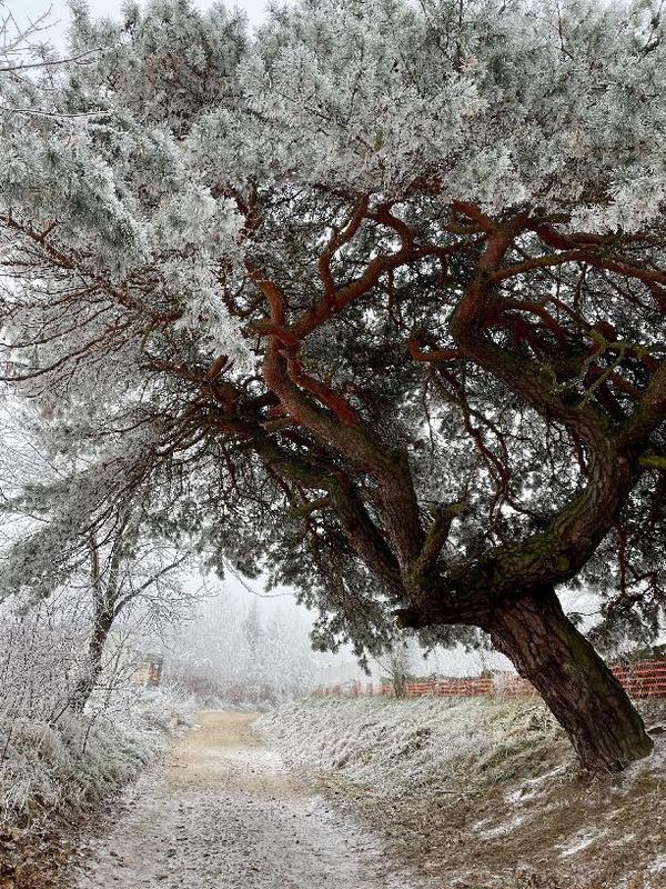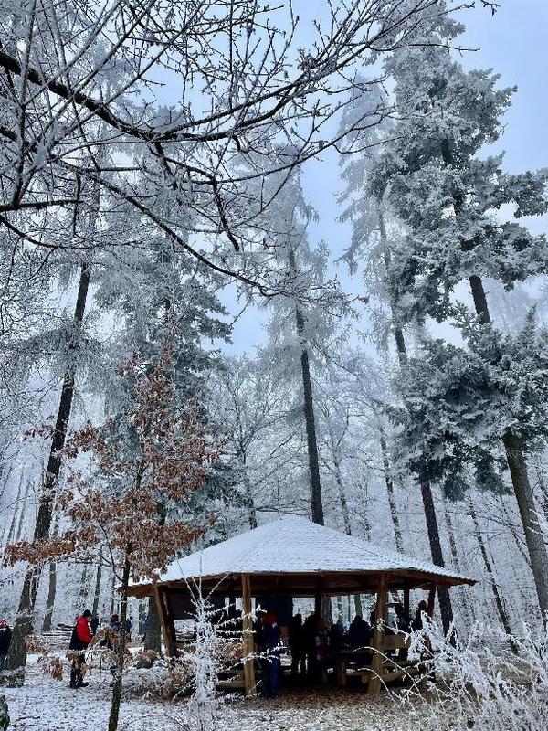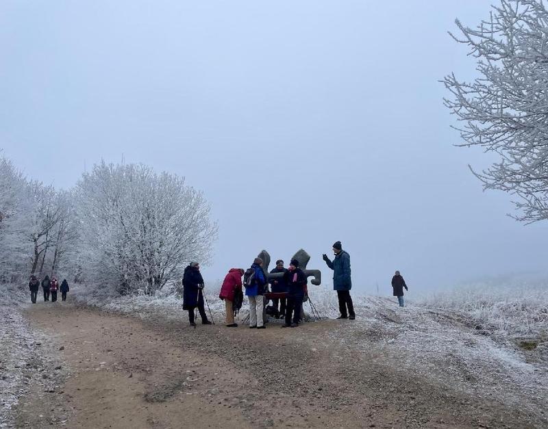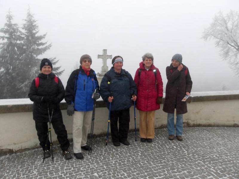 Pohádkově ojíněným lesem jsme po žluté turistické značce vystoupali na Vranov. Tam jsme potkávali další naše členy, kteří na Vranov dojeli auty.
