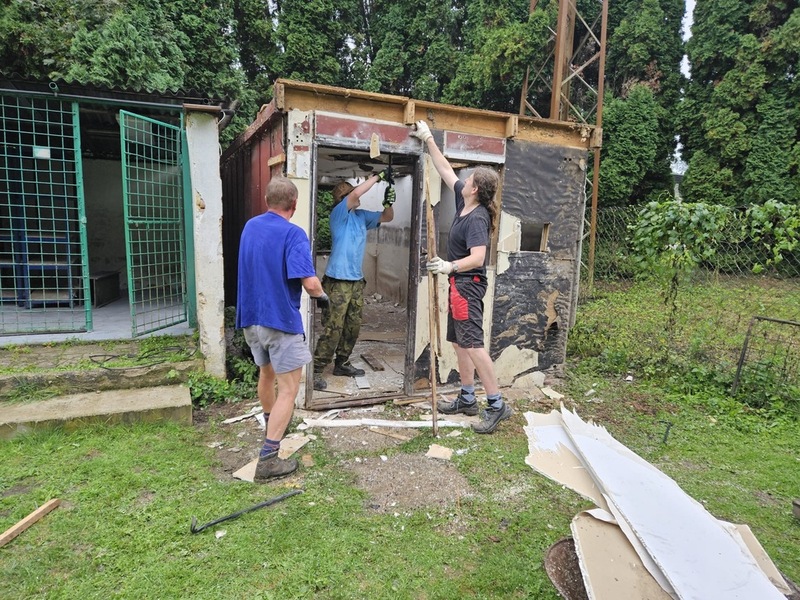 Součástí prací byla také demolice části zázemí pro členy, které bylo v minulosti poškozeno opakovanými povodněmi. Objekt čeká modernizace, která by měla přinést funkčnější a odolnější prostory pro činnost klubu. Dále proběhla údržba kotců pro psy včetně oprav podlah, čímž se zlepšily podmínky pro jejich využívání.