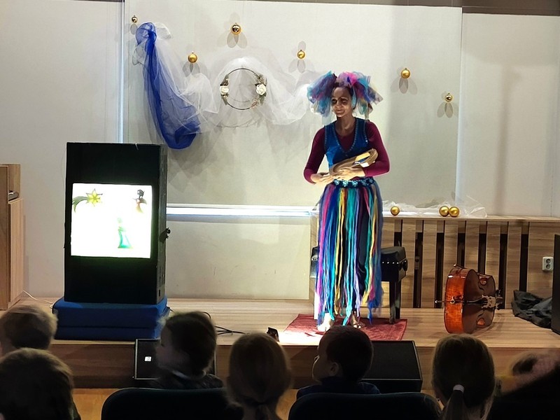 ... se konalo v pondělí 8. prosince 2025. Pro děti ho připravila Žůžo Muzička - paní Eva. A bylo to představení jiné - milé, klidné, plné hudby, hudebních nástrojů, písniček a specialit, např. si děti mohly přivonět ke koření, které patří k Vánocům.