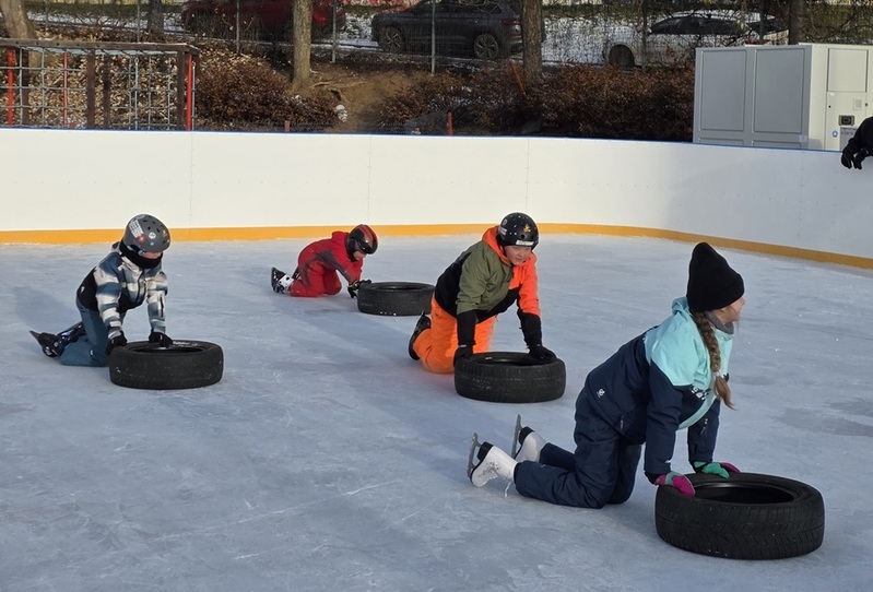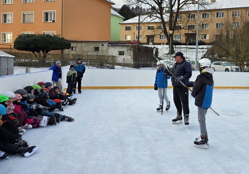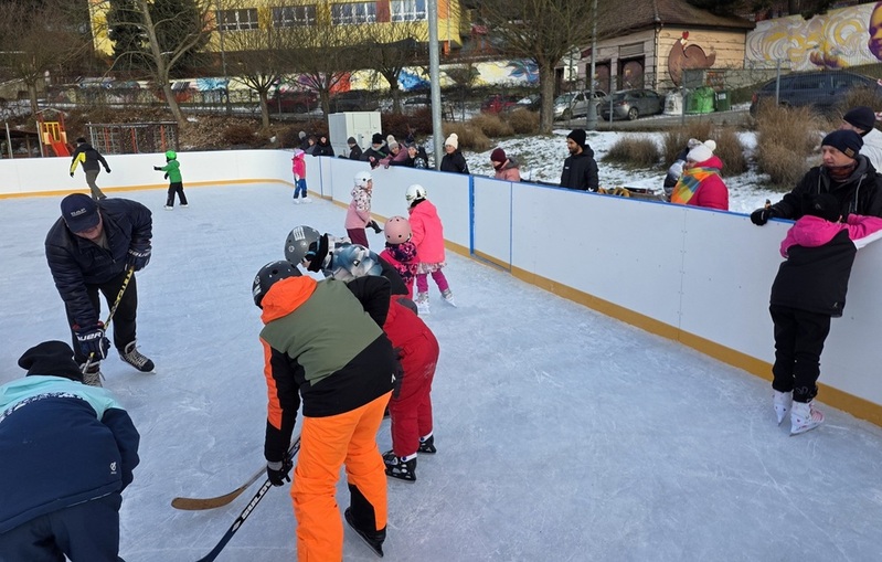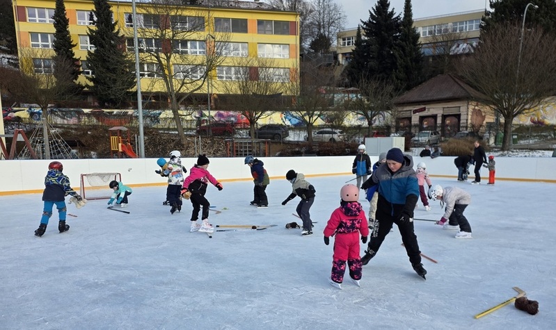Dle přihlášek mělo být dětí kolem deseti, ale zájem předčil očekávání. Před vchodem na kluziště netrpělivě čekalo více než 20 dětí s rodiči. Po nazutí bruslí všichni vyjeli na led. Vedoucí školky si s dětmi popovídal a každý s účastníků si vyzkoušeli úvodní kolečko na ledě, kde se podle úrovně bruslení rozdělili na dvě skupiny. V průběhu bruslení si děti vyzkoušeli různé soutěže, správnost držení rovnováhy, rady, jak vstávat po pádu, zdolávat různé překážky, a nakonec si zahráli i hokej.