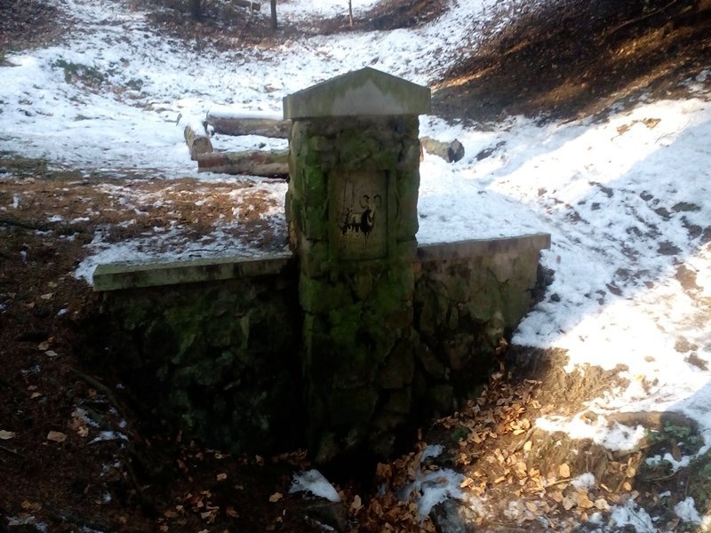 Od studánky se vrátíme zpátky k rozcestníku a budeme pokračovat po stezce vedoucí svahem na místo, kde stával hrad Ronov. Z něj je značená cesta vedena po vrcholu hřbetu a po více než 1 km narazíme na další rozcestník „Mufloní studánka“. Z něho vede odbočka po nevýrazných schůdcích do údolí, v němž se Mufloní studánka nachází. Jedná se o jednu z mladších studánek, neboť byla postavena teprve v roce 1971. Přesto prošla již v roce 1991 obnovou. Studánka vypadá pěkně a její okolí se zřejmě pravidelně udržuje. Na plošině těsně nad studánkou jsou nyní zbytky ohniště. Na kládách, které ho obklopují, je možno si ne moc pohodlně sednout. Studánka poskytuje jen málo vody v objemu asi 0,15 l za minutu. Její GPS souřadnice jsou 49° 16' 58,7'' N a 16° 39' 17,2'' E, nadmořská výška činí 400 m.