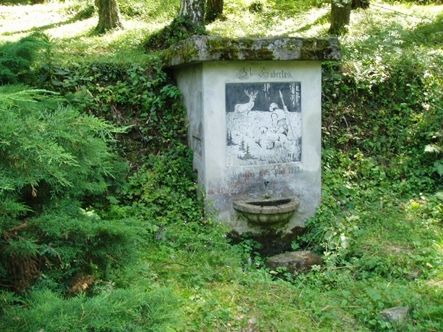 Studánka byla vybudována v roce 1937. Nachází se na lesním palouku, na kterém rostou i dřeviny exotičtějšího původu. Na studánce je ztvárněn motiv, kdy sv. Hubert na lovu klečí před jelenem, který má v paroží křížek. Zobrazení, na kterém je nakreslen tento patron myslivců a lovců spolu s jelenem, zdobí ještě další dvě studánky v širším okolí Adamova, z nichž jednu míjíme při jízdě po silnici mezi Olomučany a Josefovem. Nad studánkou u cesty je možno posedět na lavičce.