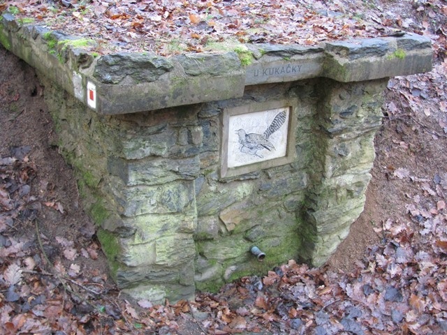Od studánky U Huberta přejdeme ke studánce U kukačky již snadno, cesta je značena červenou turistickou značkou. Tato studánka byla postavena v roce 1938 v těsné blízkosti významné křižovatky lesních cest Hradské a Doubské a cesty, která vede k polím nad obcí Olomučany. Název studánky je odvozen od obrázku kukačky, který je namalovaný na její čelní stěně. Jeho zhotovitelem je Emanuel Koupý, který jako předlohu použil kresbu od Stanislava Lolka, ilustrátora známé Těsnohlídkovy knihy Liška Bystrouška.