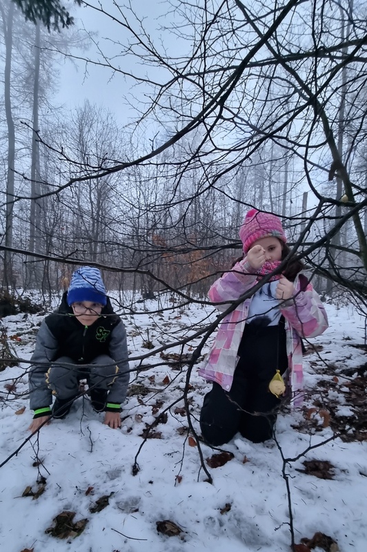 Na přinesené ozdoby se doslova vrhli nejenom obyvatelé lesa, ale i děti, jak je patrné z fotografií… Spatřen byl zde také vzácný druh prasete divokého a to Divočák bílý (anglicky wild white pig, latinsky prasus bilus kofolus stetinates). Domů šly děti s prázdnou, ale odnášely si nezapomenutelné zážitky, protože během cesty hrály také bojovku.