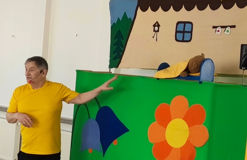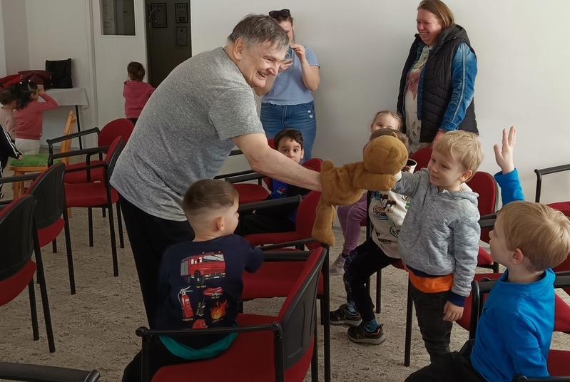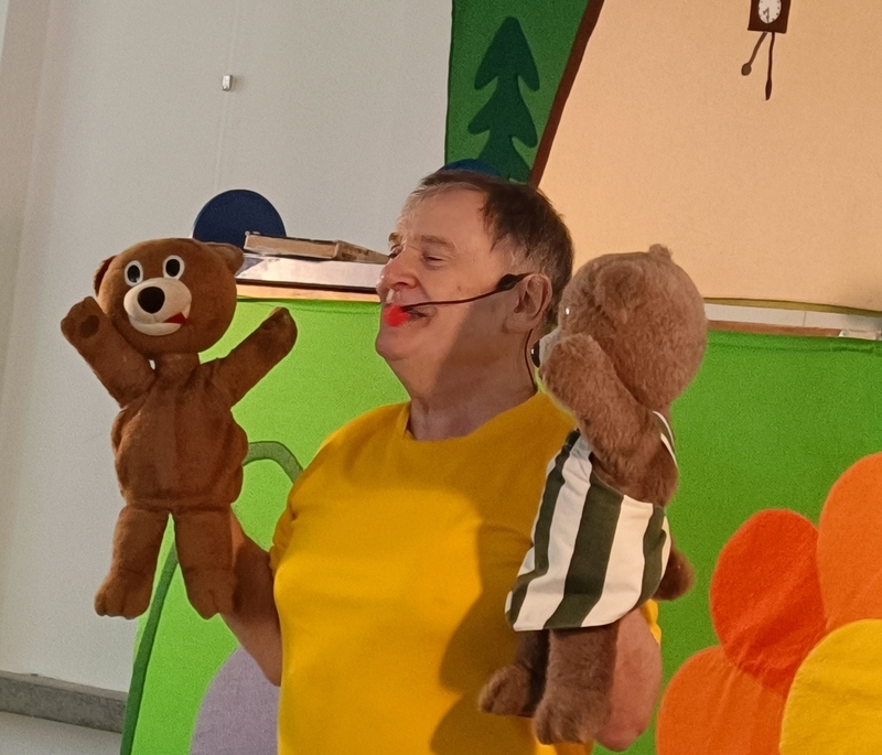 Pohádkové dopoledne dnes přineslo dětem Malou medvědí pohádku. Zdeněk Ševčík ji hraje už 20 roků.Vypráví v ní tři příběhy medvídka Ťulíka a jeho medvědího dědečka. O pohádku nepřipravíme ani děti z MŠ Jilemnického, na ty čeká v dubnu t.r.