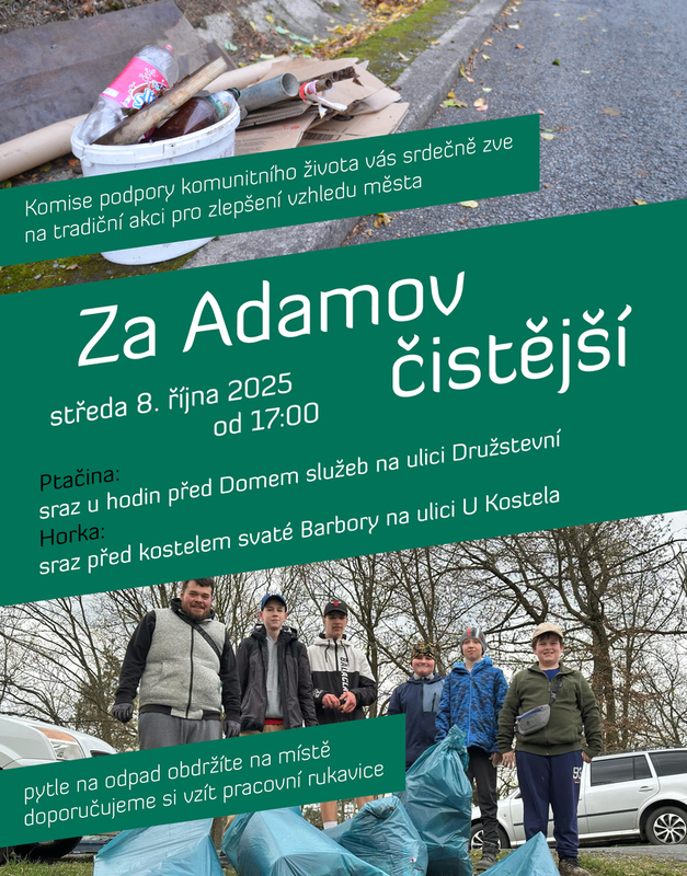 Připojte se k nám a pomozte nám udělat Adamov čistějším a krásnějším!