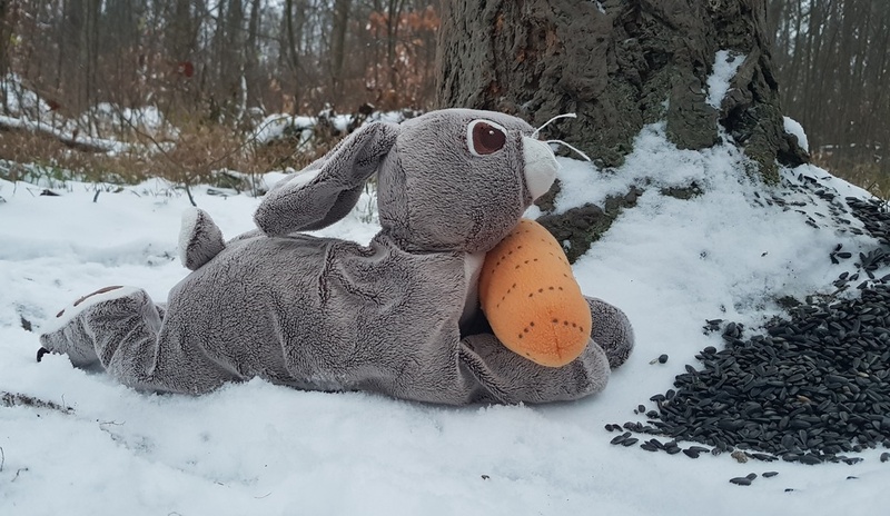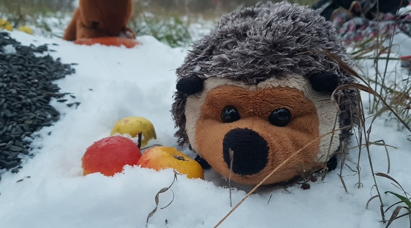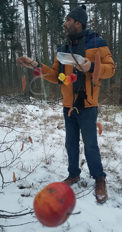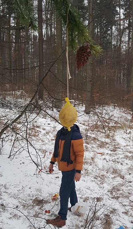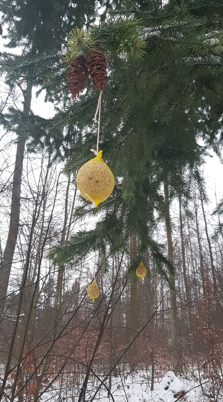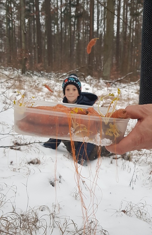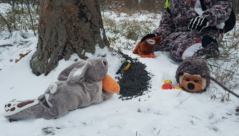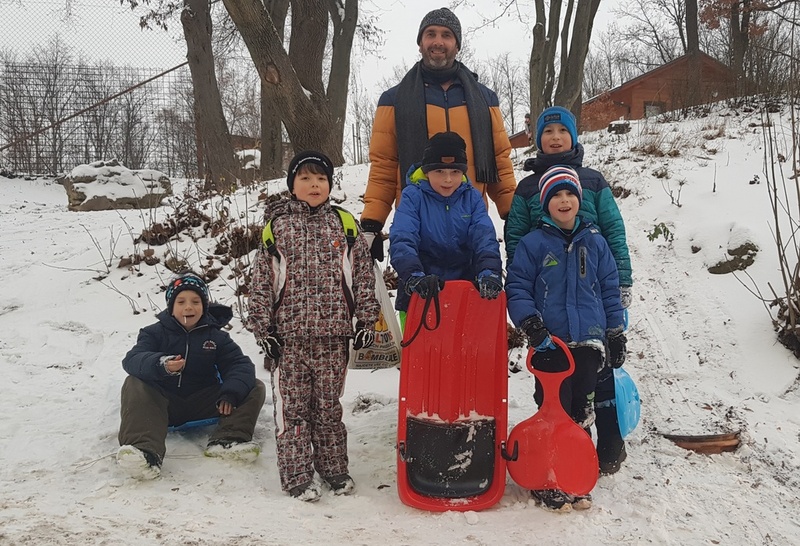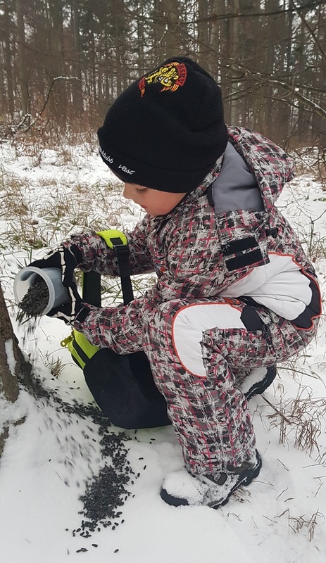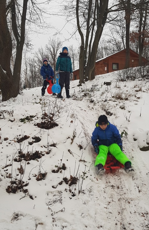Podařilo se nám vyfotit i první zvířátka, která se doslova vrhla na dobroty v podobě semínek slunečnice, lojových koulí, žaludů, mrkve, jablek… Na závěr nechybělo koulování a sáňkování.